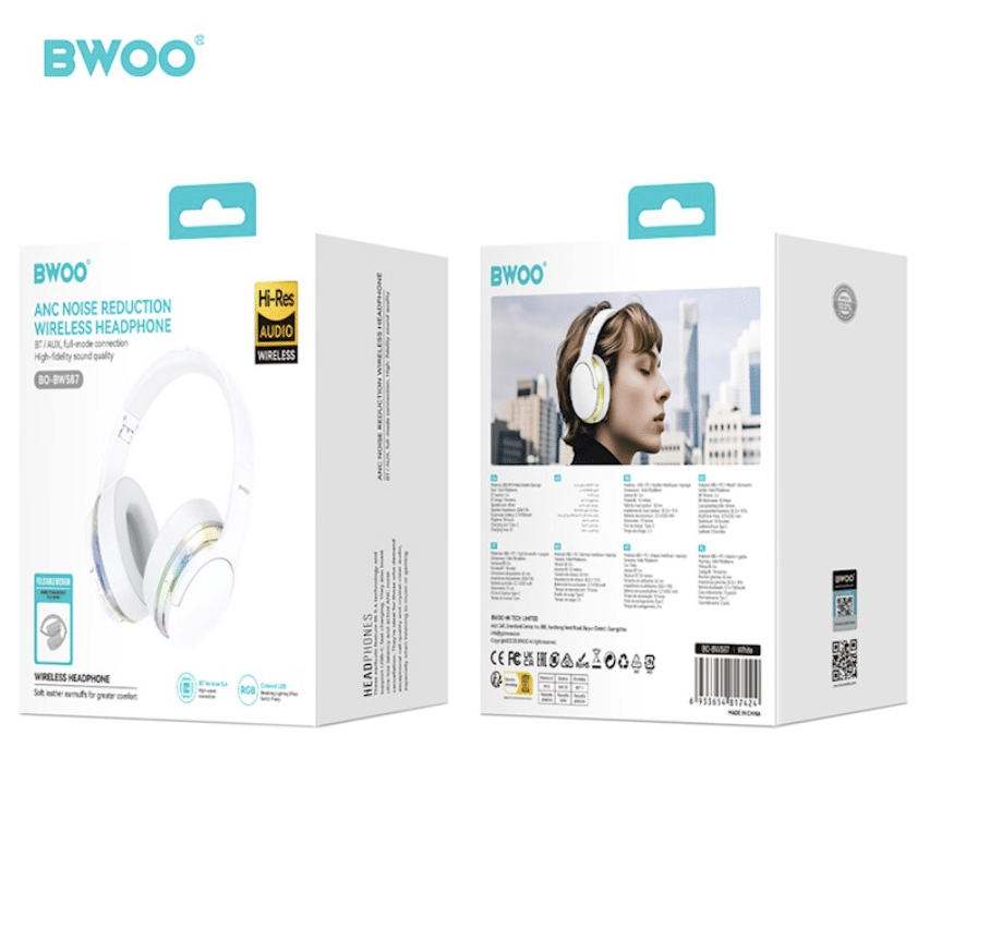 Les casques BWOO Over-Ear sont équipés de haut-parleurs composites de 40 mm, offrant un son riche et immersif. Les aigus sont clairs et précis, tandis que les médiums sont pleins et chaleureux, vous permettant de profiter de votre musique avec une clarté et une profondeur exceptionnelles.
