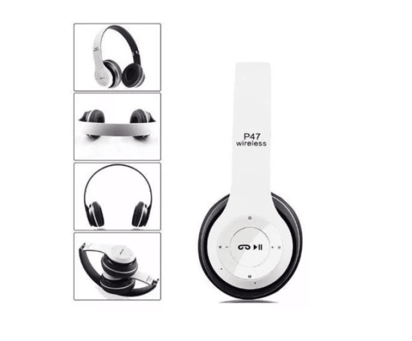 Casque sans fil P47 blanc, Bluetooth 4.1, micro intégré, confort léger.
