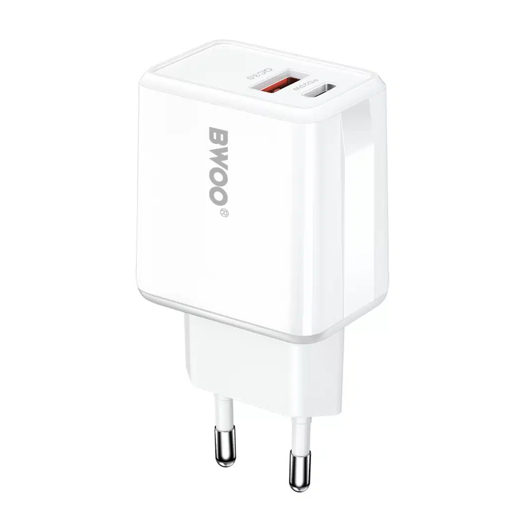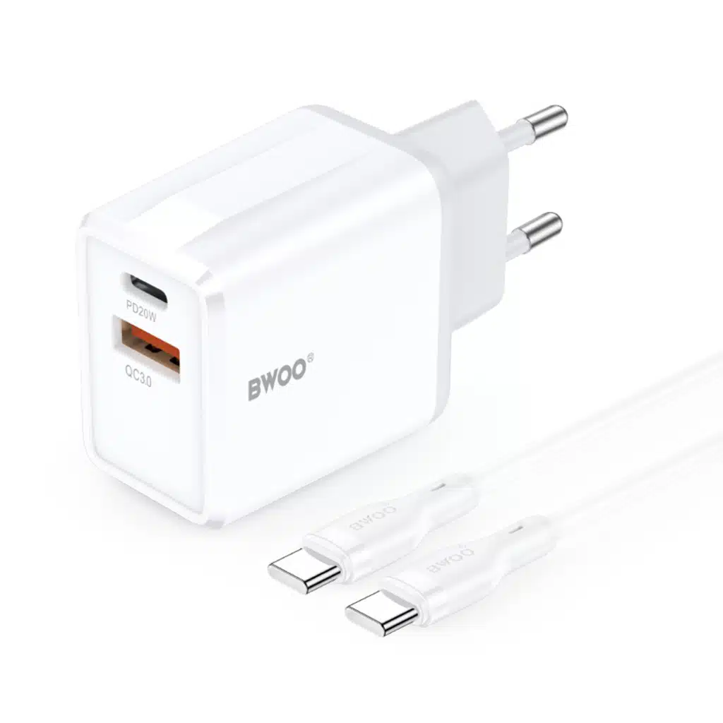CHARGEUR USB+TYPE C 20W FAST +CABLE C/C BWOO BLANC