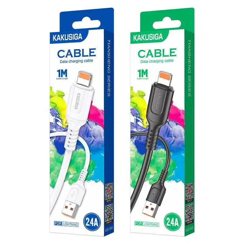 Le câble Lightning KAKUSIGA CAB90KSO8 KSC805 assure charge rapide 3A stable et sécurisée. Protection contre surtensions, surchauffe et courts-circuits. Longueur 1 mètre idéale pour usage quotidien et synchronisation fiable.