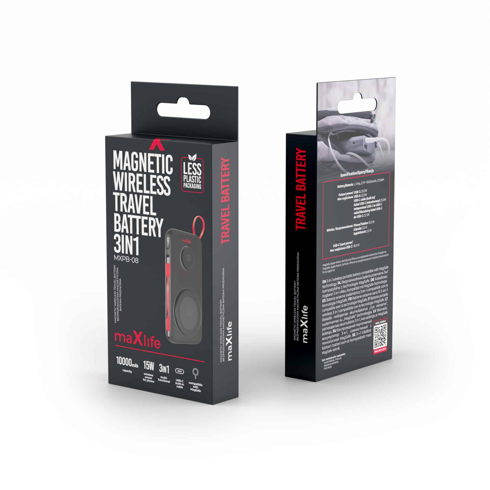 Power bank 3 en 1 de 10 000 mAh avec câbles intégrés pour charger plusieurs appareils simultanément.